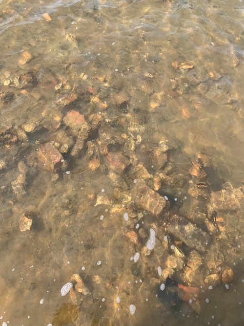 مشينا مسافة قصيرة إلى الشاطئ، وارتدينا أحذيتنا المطاطية، وخوضنا في ارتفاع الساق. نظرنا إلى الماء وعلى الشاطئ الصغير، خوضنا جنوبًا في البداية ولاحظنا على الفور عددًا من الطوب المنتشر على طول خط الماء. كانت هناك أيضًا شظايا زجاجية وشظايا من أنواع مختلفة من الفخار. بعد بضع دقائق من الفحص والخوض بعمق شديد، كان من الواضح أن هذا الموقع كان متأخرًا جدًا. كان الطوب متجانسًا تمامًا في الحجم، وتم تشكيله جيدًا، وتم حرقه بدرجة عالية، كما لو كان في فرن احترافي. لم يكن من الممكن العثور على مثل هذا الطوب الصلب والمصنوع جيدًا على الشاطئ في منتصف القرن17، عندما كان الطوب مصنوعًا يدويًا وغير منتظم وكان يتميز بقدر كبير من التباين في الجودة؛ من المحتمل أن يكون قد تم صنعه في الموقع من قبل شخص لديه معرفة أو خبرة محدودة. إلى جانب الطوب، كان الفخار الذي لاحظته هنا يتألف أساسًا من أدوات المائدة البيضاء من مجموعة متنوعة لم تكن متوفرة حتى 1820s أو نحو ذلك. كانت هناك أيضًا بعض الأجزاء الخزفية النفعية ذات الجسم الأحمر والتي لم تكن من النوع الذي كان يمكن العثور عليه خلال فترة أليس. من الواضح أن هذا الموقع يعود تاريخه إلى القرن 19. شعرت بخيبة أمل وارتديت حذائي المليء بالماء على الشاطئ لتفريغها قبل التوجه شمالًا.
