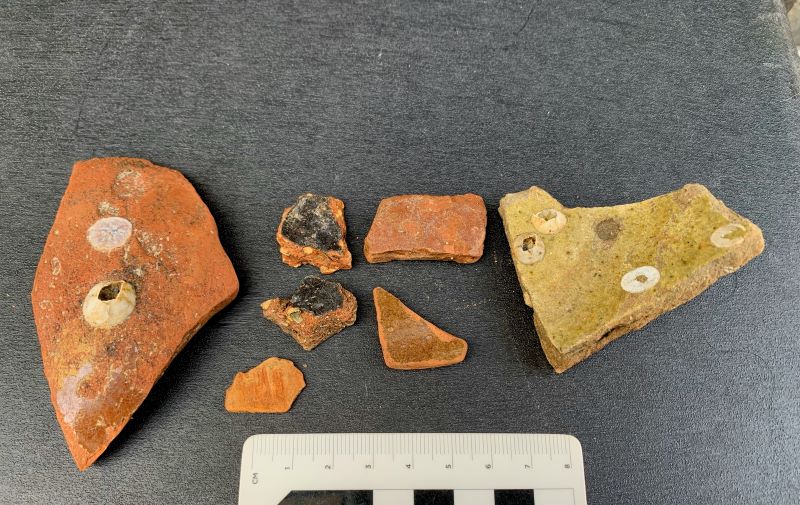 تم تقسيم الجانب الشمالي إلى كتل كبيرة وصغيرة من الأعشاب البحرية وجذوع الأشجار الميتة. كان من الواضح أن المد والجزر والرياح الغربية قد دفعت المياه المالحة إلى الأعلى في المستنقع هنا، مما أسفر عن مقتل آخر أشجار الخط الساحلي على طول هذا الامتداد. بعد بعض المشي الخشن عبر المناطق الموحلة وعبور بعض الكتل غير المستوية، وصلنا إلى امتداد صغير سليم من الشاطئ الرملي. هنا تغير حظنا. أول شيء رأيته هو مجموعة من شظايا الطوب الصغيرة القابلة للتفتيت. لا توجد مكعبات كاملة أو حتى قطع كبيرة، ولكن كتل حمراء ناعمة من الطين الأحمر منخفض الحرق. من الواضح أن هذه كانت أحجار قد ذابت وتعرضت للضرب من قبل الأمواج بمرور الوقت. إلى جانب قطع الطوب رأيت بضع أجزاء من الفخار النفعي. يعد الفخار أحد أكثر الأدوات المفيدة لعالم الآثار لتحديد تاريخ موقع ما - على الأقل لفترة عامة - ولكن في بعض الأحيان يمكنه ربط الموقع بإطار زمني ضيق جدًا. بعض أنواع الفخار قصيرة العمر، غالبًا بسبب الاتجاهات المتغيرة، بينما يستمر البعض الآخر لفترات أطول بسبب تصميمها المفيد وتكلفتها المنخفضة. تضمنت الاكتشافات هنا أنواعًا مختلفة من الأواني ذات الجسم الأحمر مع طلاء أسود أو بني. هذه أنواع الطوب الشائعة التي تتميز بعمر طويل، وتمتد طوال فترات الاستعمار وما بعد الاستعمار. لحسن الحظ، كانت هناك أيضًا بعض الأجزاء المقواة بالحصى وغير الحصوية في شمال ديفون. كانت هناك بعض أجزاء Buckley-ware أيضًا. من الواضح أن هذه المواد هي عناصر كان من الممكن العثور عليها في معظم الأسر الاستعمارية في ذلك الوقت. كانت لها فترة استخدام قوية نسبيًا امتدت إلى القرن 17، وتضاءل استخدامها خلال القرن 18، حتى اختفت تقريبًا من المواقع بحلول النصف الأخير من القرن.