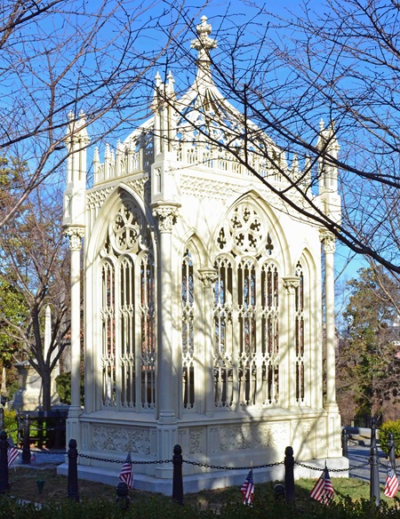تتمتع DGS بتاريخ حافل بالاهتمام الكبير بصيانة النصب التذكاري. في 2016، تم ترميم القبر. تركت عقود من الإصلاحات الأعمال المعدنية بمواد حشو وبقع صفائح معدنية وطبقات من السد والمواد الكاشطة والطلاء الأسود. تم إجراء تحليل الطلاء لتحديد اللون الأصلي حتى يمكن استعادته. وقد تشاورت DGS مع DHR منذ 2012 بشأن خطة الترميم والمعالجة لهذا المشروع لضمان نتيجة حساسة ومناسبة. والجدير بالذكر أن الهيكل المصنوع من الحديد المصبوب قد أعيد إلى لونه الأصلي من الحجر العاجي الكريمي مقابل اللون الأسود الذي تم طلاؤه على مر السنين.