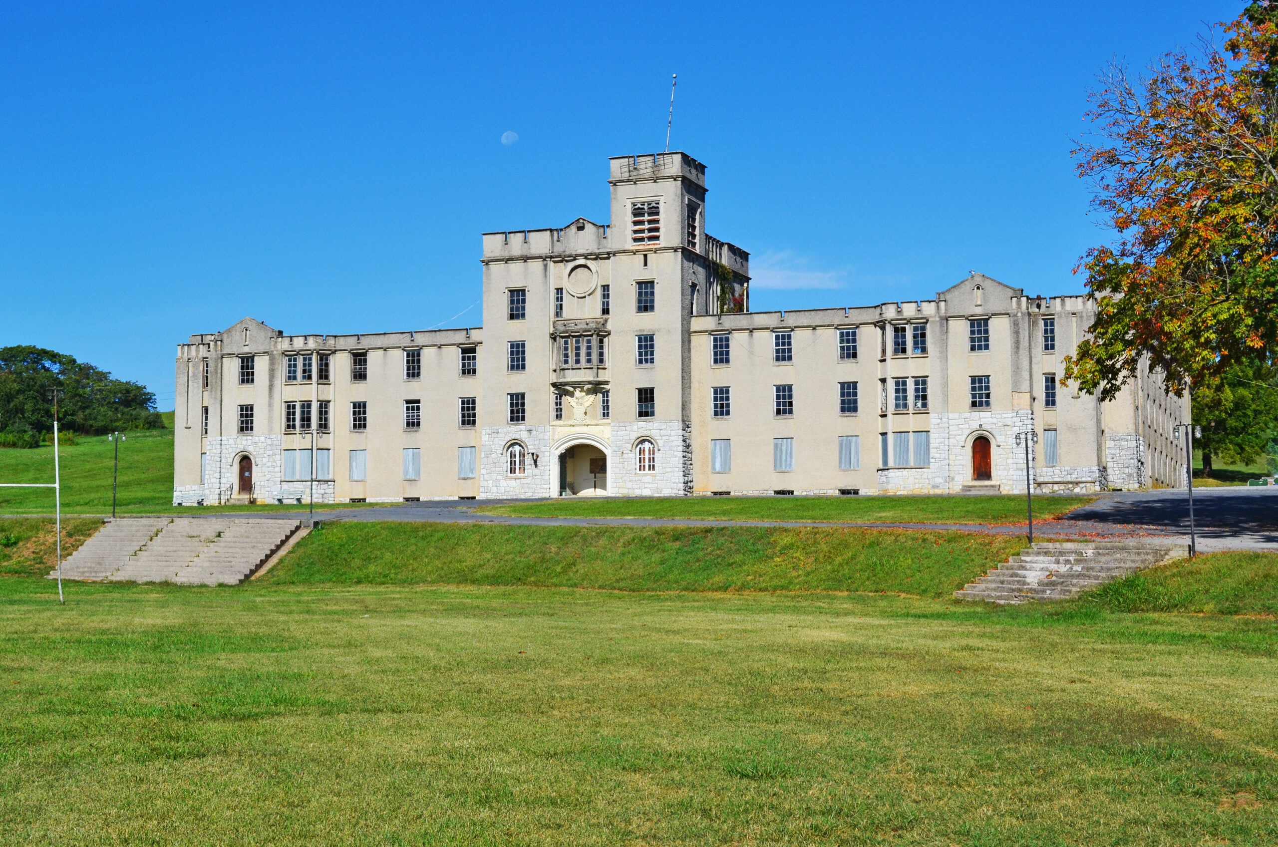 تأسست أكاديمية أوغوستا العسكرية على يد المحارب الكونفدرالي المخضرم ومندوب الولاية تشارلز سمرفيل رولر في 1879 في فورت ديفاينس، شمال Staunton في مقاطعة Augusta. وحتى إغلاقها في 1984 ، كانت أقدم مدرسة إعدادية عسكرية في الكومنولث. السمة المعمارية المهيمنة على المدرسة هي الثكنة الرئيسية المغطاة بالجص، التي صممها تي جيه كولينز وأولاده من Staunton على الطراز القوطي ذي الأسوار. اكتمل النموذج الأولي في 1915 ، وكان النموذج الأولي هو ثكنة ألكسندر جاكسون ديفيس في معهد فرجينيا العسكري. في أعقاب الحرب العالمية الأولى وتقرير الجنرال جون ج. بيرشينج إلى الكونجرس في 1920 الذي أوصى فيه بالتدريب العسكري المبكر للشباب الأمريكي، شكلت أكاديمية Augusta العسكرية أول فيلق لتدريب ضباط الاحتياط المبتدئين في البلاد، وحققت فيما بعد سمعة دولية للتميز في مجال التعليم العسكري على المستوى الثانوي. بعد إغلاقه، تم بيع الحرم الجامعي للكنيسة الخمسينية المتحدة الدولية، التي حولته إلى ساحة تخييم.