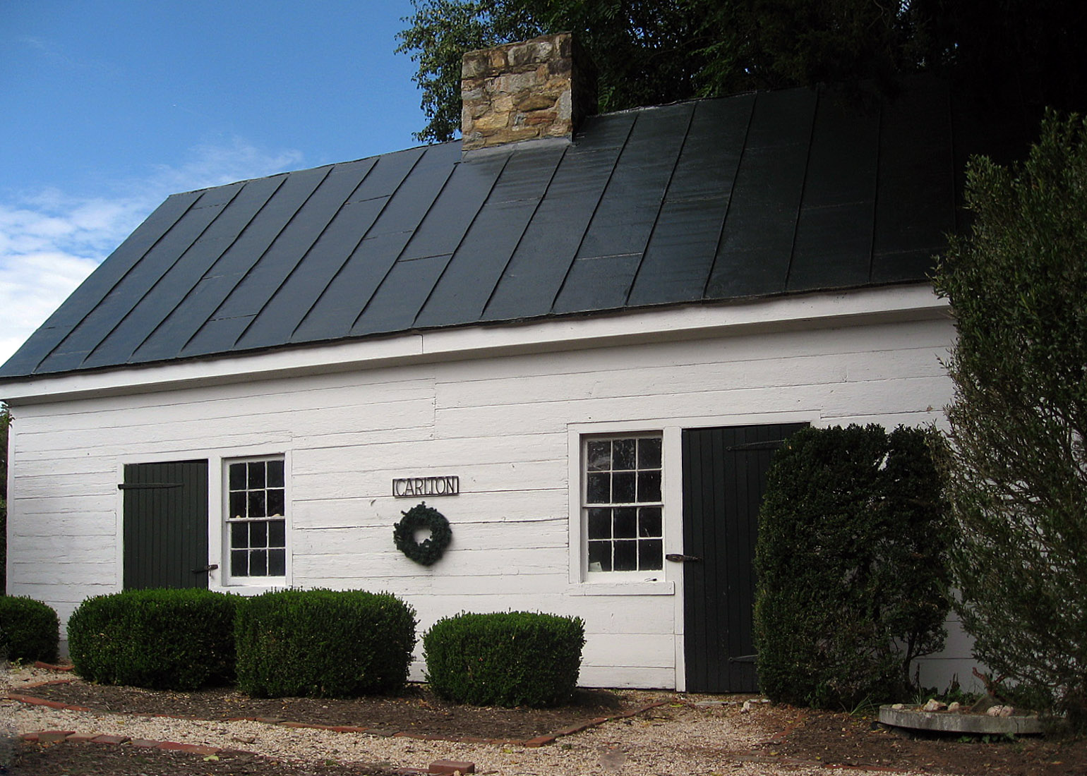 يعد المسكن البارز في كارلتون واحداً من عدة منازل قديمة كبيرة تتوج المرتفعات المحيطة بفالموث وفريدريكسبيرغ في مقاطعة ستافورد. يتّبع التصميم الخارجي الشكل الجورجي القياسي، حيث يستخدم واجهة من خمسة طوابق وسقفاً منحدر. لا تزال معظم الأقمشة الخارجية والداخلية الأصلية لكارلتون باقية، بما في ذلك خزانة كبيرة مدمجة ذات باب زجاجي في غرفة الطعام. تنتهي سكة السلم عند النيويل بنقش حلزوني عمودي أو قرن كبش. يقع كارلتون على حافة رعن شديد الانحدار يطل مباشرةً على فالماوث، وكان كارلتون منزل جون شورت، وهو تاجر محلي قام ببناء المنزل في حوالي عام 1932. 1785 بعد زواجه من جوديث بول من مقاطعة لانكستر. ومما يضيف إلى الأجواء التاريخية لكارلتون ثلاثة مبانٍ خارجية أصلية: مطبخ/مغسلة، ومحل ألبان، ومدخنة.