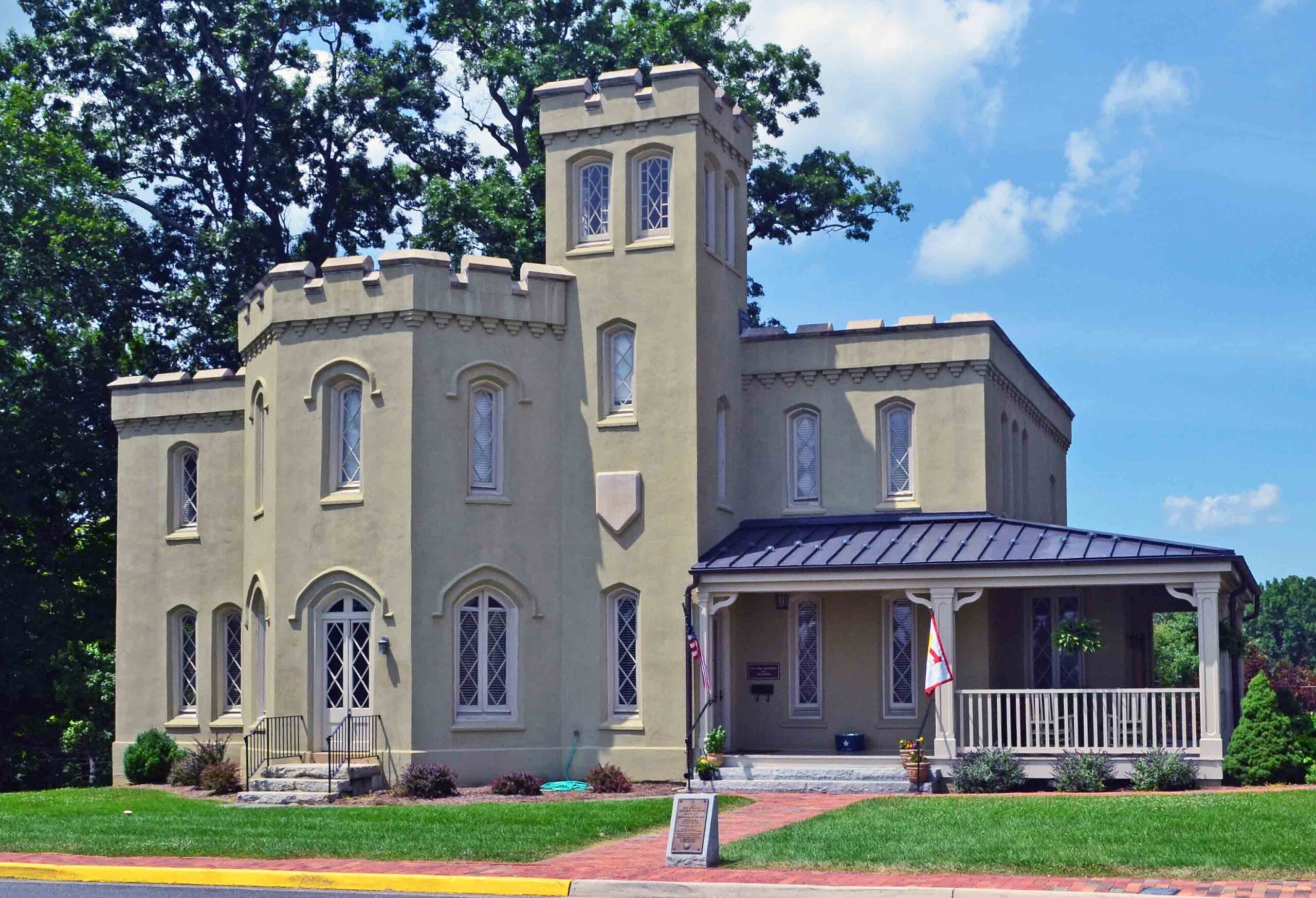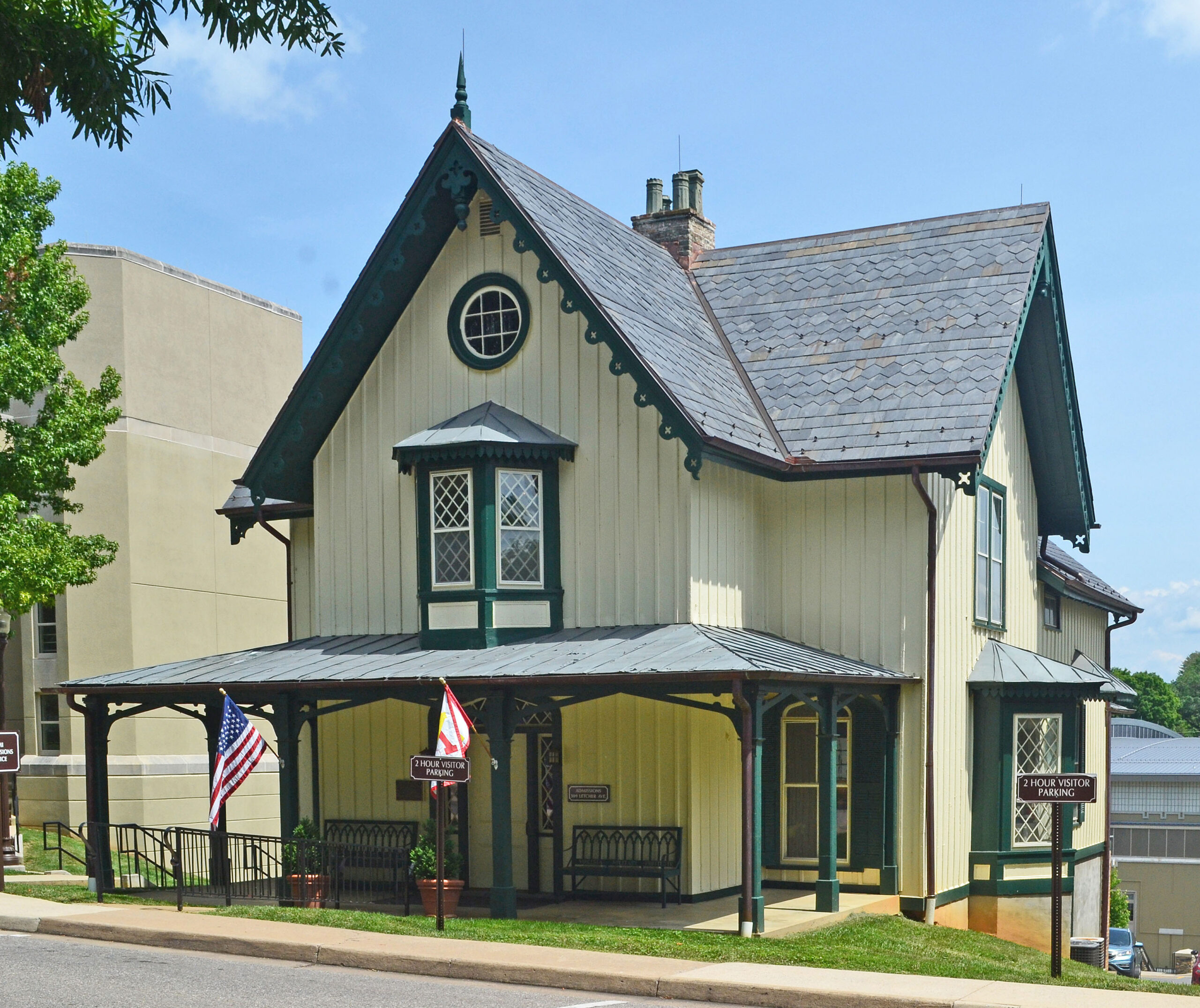 تأسس معهد فيرجينيا العسكري في 1839 ، وهو أول مدرسة عسكرية مدعومة من الدولة في البلاد، وقد زودت البلاد بالعديد من القادة العسكريين البارزين، أبرزهم جنرال الجيش جورج سي مارشال. يتألف الحرم الجامعي، الذي يقع في منطقة ليكسينغتون التاريخية، من حوالي خمسة وعشرين مبنى رئيسياً يجمعها طراز الإحياء القوطي المصبوب. أما النقطة المحورية، الثكنات، فهي عبارة عن مجمع تم تطويره كثيراً وهو عبارة عن مجمع صممه في الأصل ألكسندر جاكسون ديفيس. قام ديفيس أيضاً بتصميم منازل أعضاء هيئة التدريس ذات الطراز القوطي المُعاد إحياؤه التي تصطف على أرض العرض، والتي لا يزال منزل غيلهام (1852) ومقر المشرف (1860) قائماً. وفي عام 1910، تم تكليف المهندس المعماري بيرترام غروسفينور غودهيو ببناء قاعة جاكسون التذكارية ومنازل إضافية لأعضاء هيئة التدريس. وقد تم الحفاظ بعناية على الطابع القوطي الأصلي الذي أنشأه ديفيس في هذه الأعمال والأعمال اللاحقة. ومما يضفي تنوعاً على المنطقة التاريخية لمعهد فرجينيا العسكري مجموعة متنوعة من المساكن التي تعود للقرن الـ 19وما بعده، بما في ذلك كوخ بندلتون-كولز الذي يعود إلى القرن الثامن عشر والذي تم فيه زواج الجنرال جورج سي مارشال.