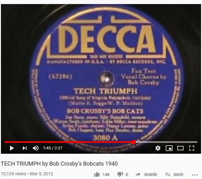 نسخة متأرجحة من "تيك تريومف"- أغنية فيرجينيا تيك "القتالية"- لبوب كروسبي بوب كروسبي، 1940.